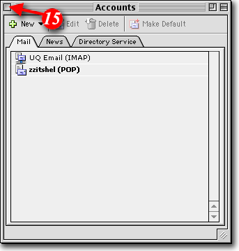 | 15)Your account will now be visible. When you have finished with this window click the top left button to close the 'Accounts' window |