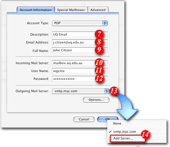 | 13)Click the double-arrows next to 'Outgoing Mail Server', and |