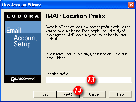 | Eudora is now setup to receive email from your central email account using the IMAP protocol.The major difference between POP3 & IMAP is that your mail will be stored on the mail server and can be accessed using webmail or another IMAP enabled email program. |