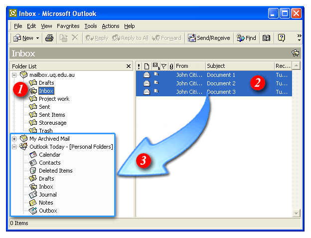 | 3)Drag the messages into the appropriate folder in your 'Personal Folders' file |