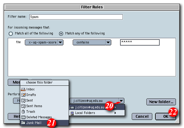 Please ensure that your e-mail account is working correctly before using this guide. If you are able to send and receive e-mails without any problems, you should not have any difficulties using this guide to filter junk mails into a 'Junk Mail' folder.