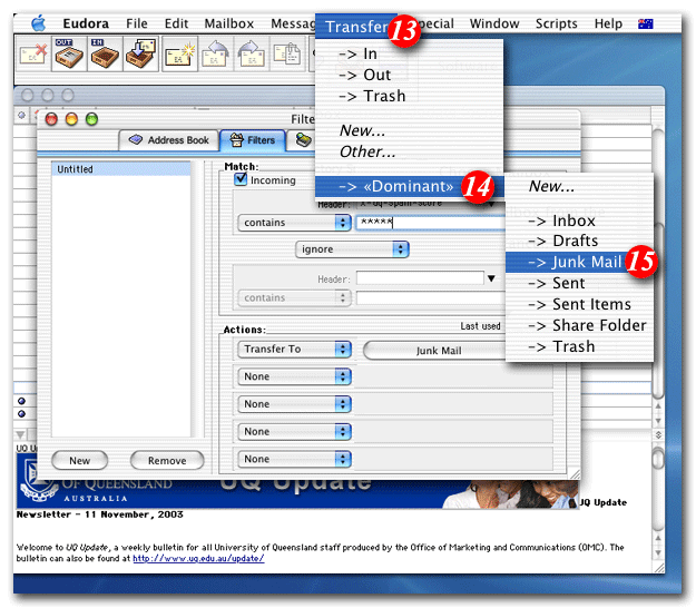 Your mail filter should now be in place. You should find that any filtered junk mail has been filtered out into the "Junk Mail" folder.